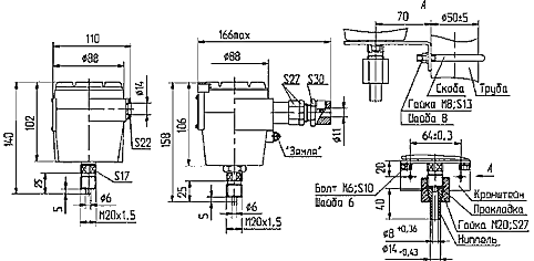 Кронштейн, ниппель, гайка М20, прокладка, крепежные детали