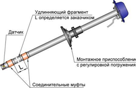 Максимальная глубина погружения рабочей части датчика в базовой комплектации составляет 0,5 м и может увеличиваться исходя из конкретных условий эксплуатации, для чего в его конструкции предусмотрен специальный удлиняющий фрагмент.