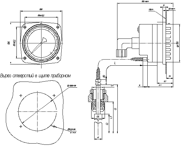 Примечание: * - термометры газовые ТГП-100М1, ТГП-100Эк-М1 при длине капилляра L от 10 м и при температуре измерения +400 °С и более изготавливаются с длиной погружения не менее 315 мм.