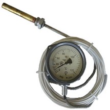 Изменения температуры контролируемой среды воспринимаются заполнителем через термобаллон и преобразуются в изменение давления, которое по капилляру передаётся в манометрическую пружину.