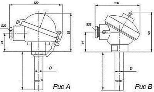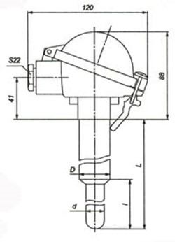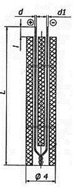 Защитная арматура - без штуцера, материал - сталь 12X18Н10Т (D), погружаемая часть - корундовая керамика (d), D/d=24/20 мм, материал головки - алюминиевый сплав. Термоэлектроды Ø 0,5 - 0,5 мм. Рабочий спай изолирован. Не герметичны к измеряемой среде. |