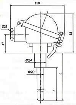Защитная арматура - без штуцера, материал - сплав ХН45Ю (D), D=20 мм. Материал головки - алюминиевый сплав. Термоэлектроды Ø 0,5-0,5мм. Один чувствительный элемент. Усиленная защита термоэлектродов за счет внутреннего чехла из корундовой керамики . Рабочий спай изолирован. Негерметичны к измеряемой среде.