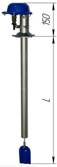 Устанавливается на крыше ёмкости вертикально. Имеет возможность плавной регулировки длины погружения за счёт регулируемого фланца.